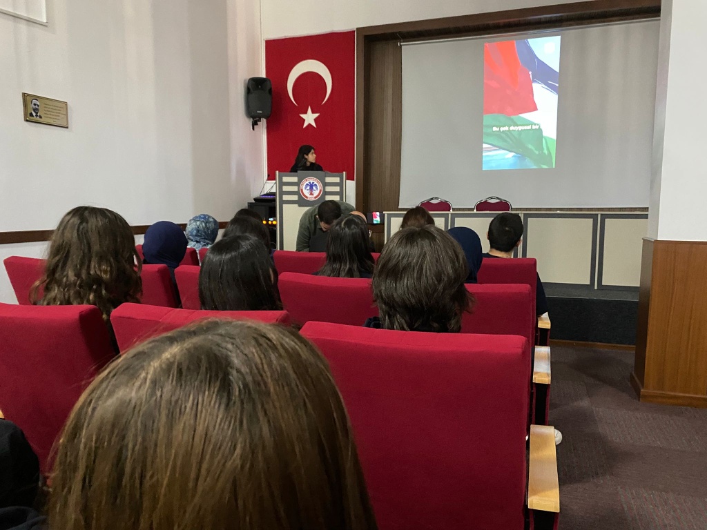 Etkinlikte öğrencilerimiz duygu dolu şiirler okudu, Filistin’in yaşadığı zorlukları anlatan videolar izlendi. Öğretmen ve öğrencilerimizin yoğun ilgi gösterdiği programda, mazlum coğrafyaların sesi olmanın önemi vurgulandı.